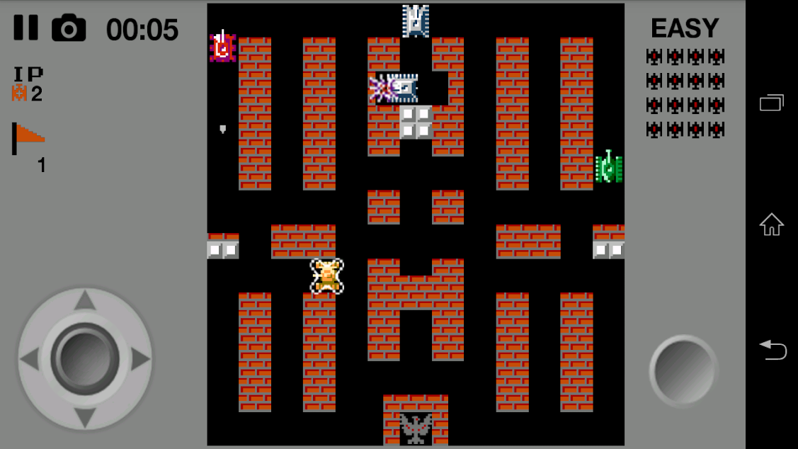 Cara memainkannya pun cukup mudah, kita hanya membidik tank dengan cara mengarahkan tank kita ke musuh menggunakan navigasi lalu menembaknya. Tapi kita juga harus waspada, jangan sampai tank musuh menghancurkan markas kita, dan enaknya lagi kalau game jadul Tank 1990 HD ini bisa dimainkan dengan teman menggunakan bluetooth maupun WiFi.